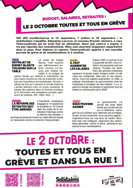 đ„Le jeudi 2 octobre, en grĂšve et dans la rue ! RDV Ă 10h place de la LibertĂ© Ă Tours !