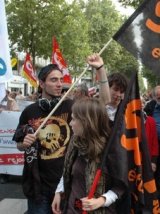 Pour cette manifestation, on attendait plus ou moins les jeunes. Leurs syndicats étaient bien présents en tête de cortège, regroupés sur un côté de la banderole principale.