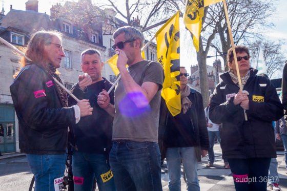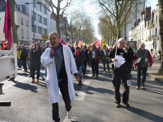 En première ligne, la forte délégation de personnels des hôpitaux venus de tout le département (Tours, Amboise, Loches, Chinon) menait le cortège, devant des agents territoriaux – municipaux de Tours, conseil départemental – qui donnaient de la voix et même du porte-voix, entraînant des salariés de services publics, de centres sociaux, de maisons de retraites, de la SKF, de Mecachrome Amboise, des cinémas Studio et de l’Éducation nationale. A ce propos, une quinzaine de représentants CGT des personnels du Département demandait à être reçue en urgence par le nouveau président du conseil départemental, Jean-Yves Couteau, « pour exiger la renégociation de la gestion du temps de travail dans les collèges ».