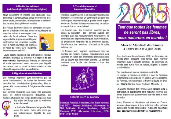 Les 2 et 3 juin 2015 : la Marche Mondiale des Femmes fait escale à Tours.