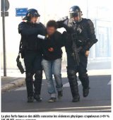 La photo en question représente deux gardes mobiles encadrant un manifestant clairement identifié appartenant à SUD (il porte un autocollant sur son pull).