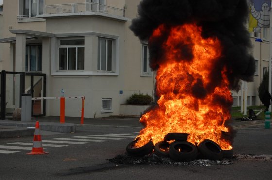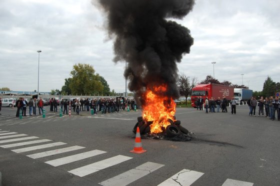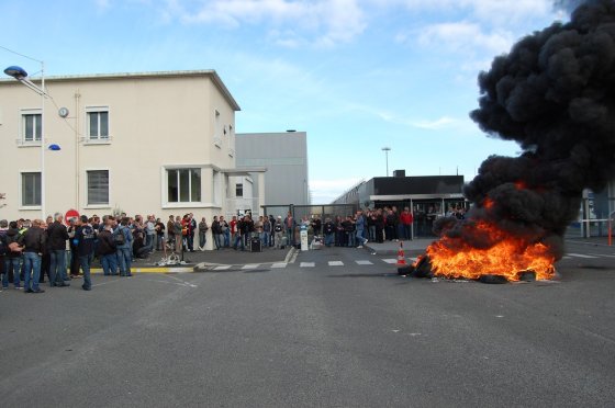 Chaude journée encore, avec nouvelle occupation de la rocade de 7 à 9h, puis AG, puis envahissement de l’usine (suite à une nouvelle embrouille de la direction) et nouvelle AG avec la présence du maire de Joué Les Tours, Lebreton (PS) qui est venu nous expliquer qu’il ne pouvait rien faire (sic) et maintien du piquet de grève (à l’ombre des pneus en feu).