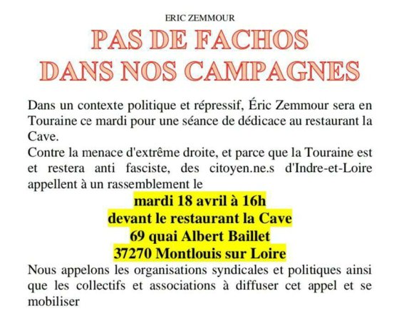 - Rassemblement contre Alliance Vita lundi 2 février à 19h30 devant le pont Mirabeau à Tours côté SUD
