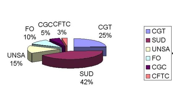Du coté des élus DP (titulaires) , SUD obtient 4 sièges, CGT 3, UNSA/CGC 1, FO 1.