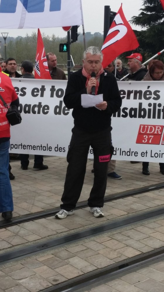 C’était hier matin, la manifestation contre le « pacte de responsabilité » rebaptisé pour l’occasion « d’austérité ». Les « SKF » sont en tête, suivi des municipaux de Tours, de Saint-Pierre, des fonctionnaires territoriaux dont ceux du conseil général, d’enseignants et retraités, d’une délégation du lycée Vinci d’Amboise, de la CGT Chinon, du CHU… Drapeaux et écharpes rouges, du noir aussi. « Le gouvernement est dans la même logique libérale, certains disent social-démocrate, que les précédents », lance le représentant FO. Pour lui et ses camarades, le « pacte de responsabilité », c’est « un pacte de complaisance, un chèque en blanc, du béton pour le patronat, du vent pour les ouvriers, une compromission. En trois ans, on perd 50 milliards de dépenses sociales et publiques. »