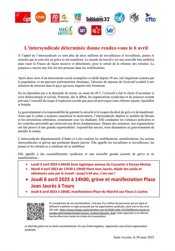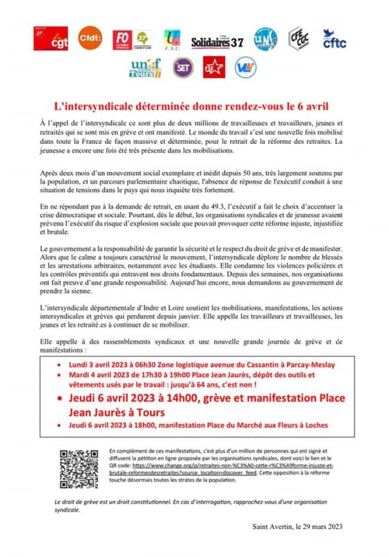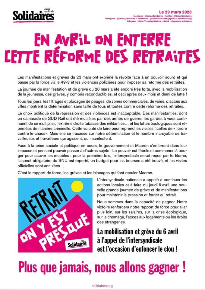 đ Le 6 avril, manifestation interpro Ă 14h place Jean JaurĂšs đ Agenda des actions Ă venir d’ici lĂ ci-dessous