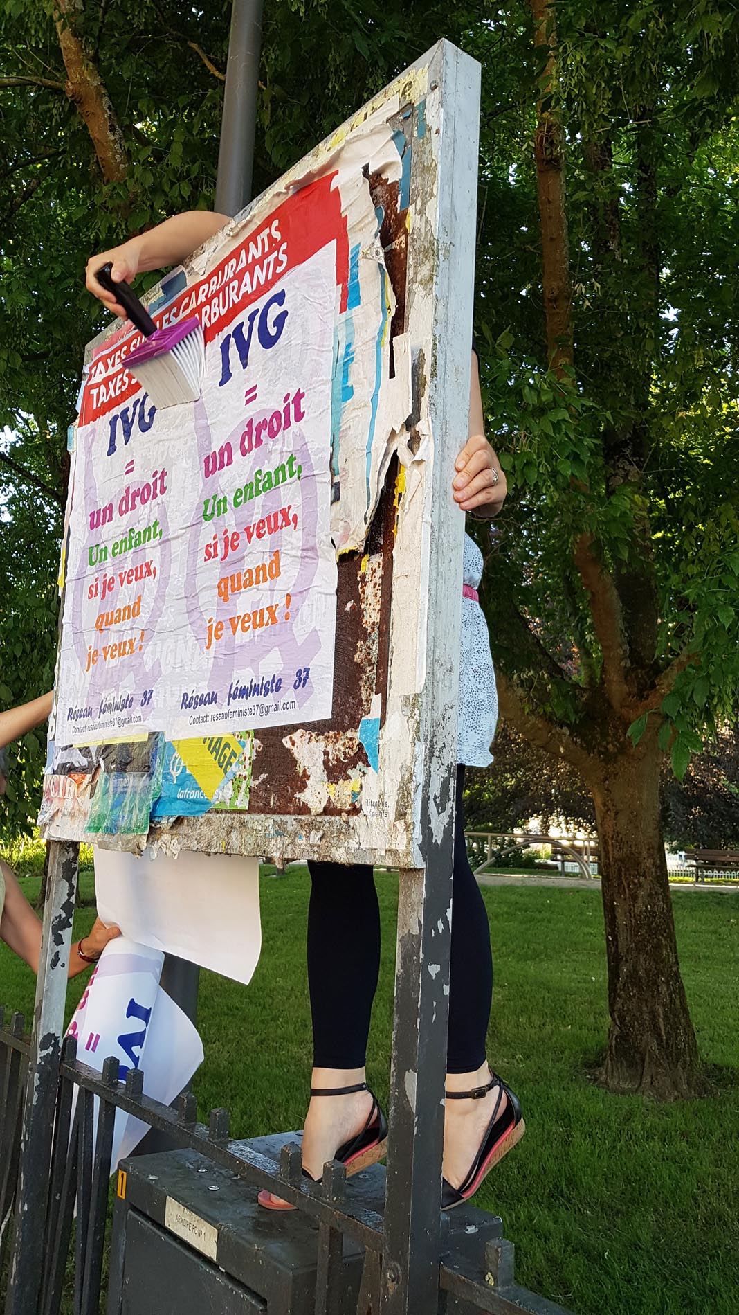 25 juin 2018, à Tours : collage contre "la manif pour tous".