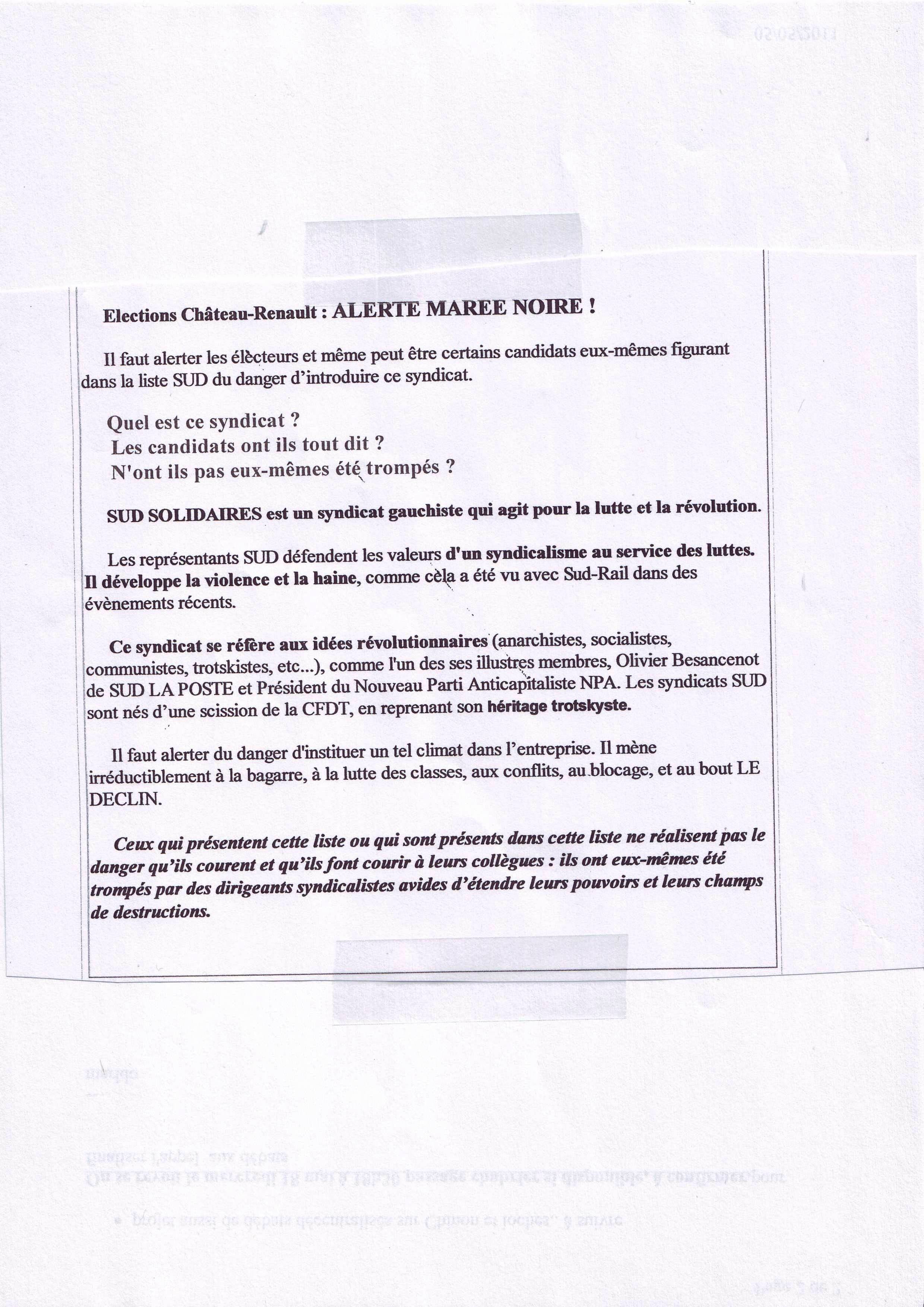 Voila ce qui circulait dans leurs milieux à notre sujet, à la veille des élections professionnelles :