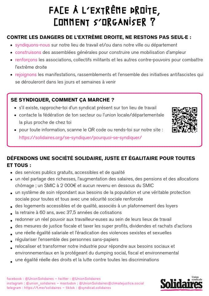 Faire front contre l’extrême droite ! Rassemblement ce soir mercredi 12 juin à 20h place Jean Jaurès puis ce weekend, infos à suivre