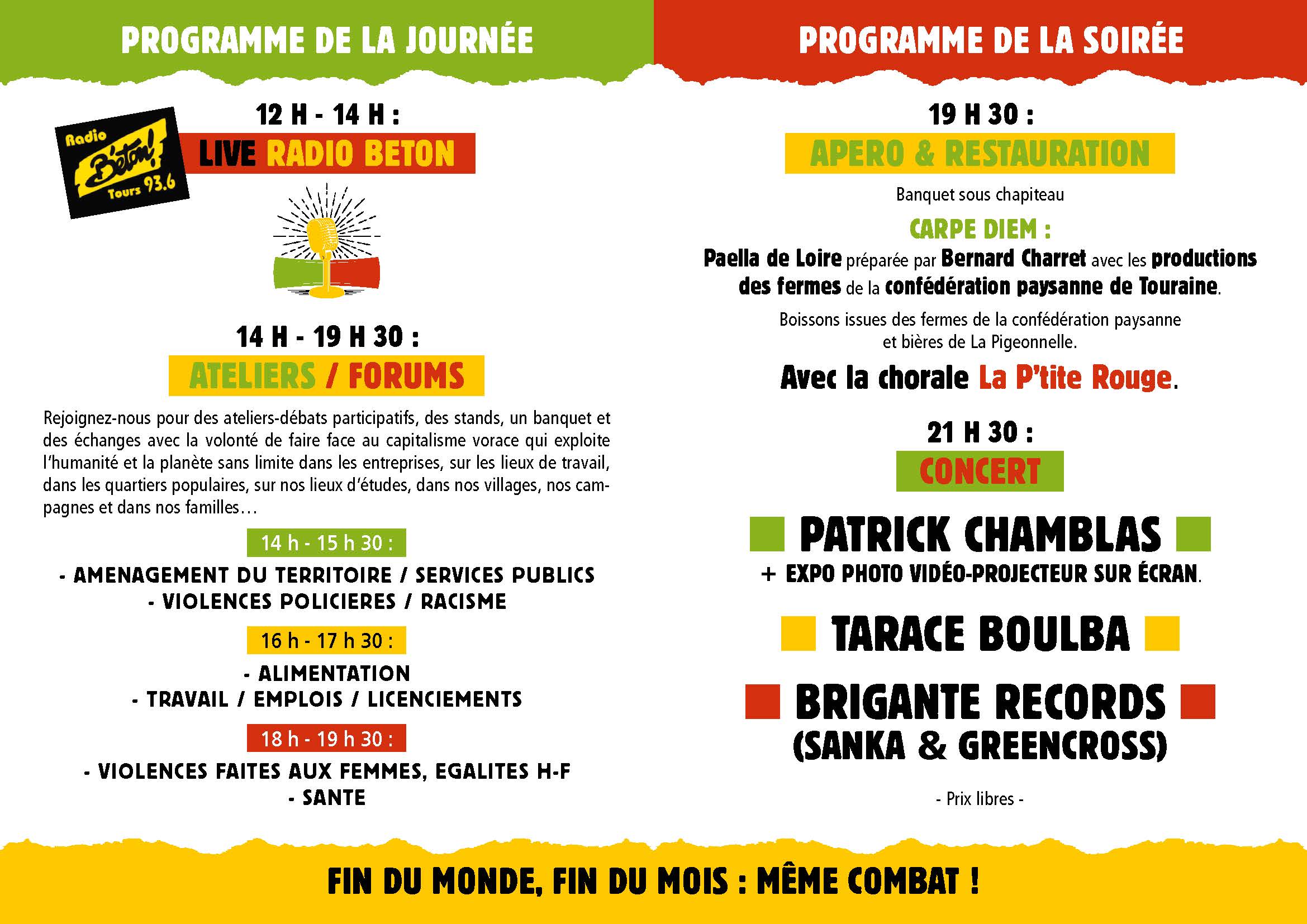 Festi’luttes, samedi 3 octobre, à partir de 13h, maison des syndicats à la camusière, St Avertin.