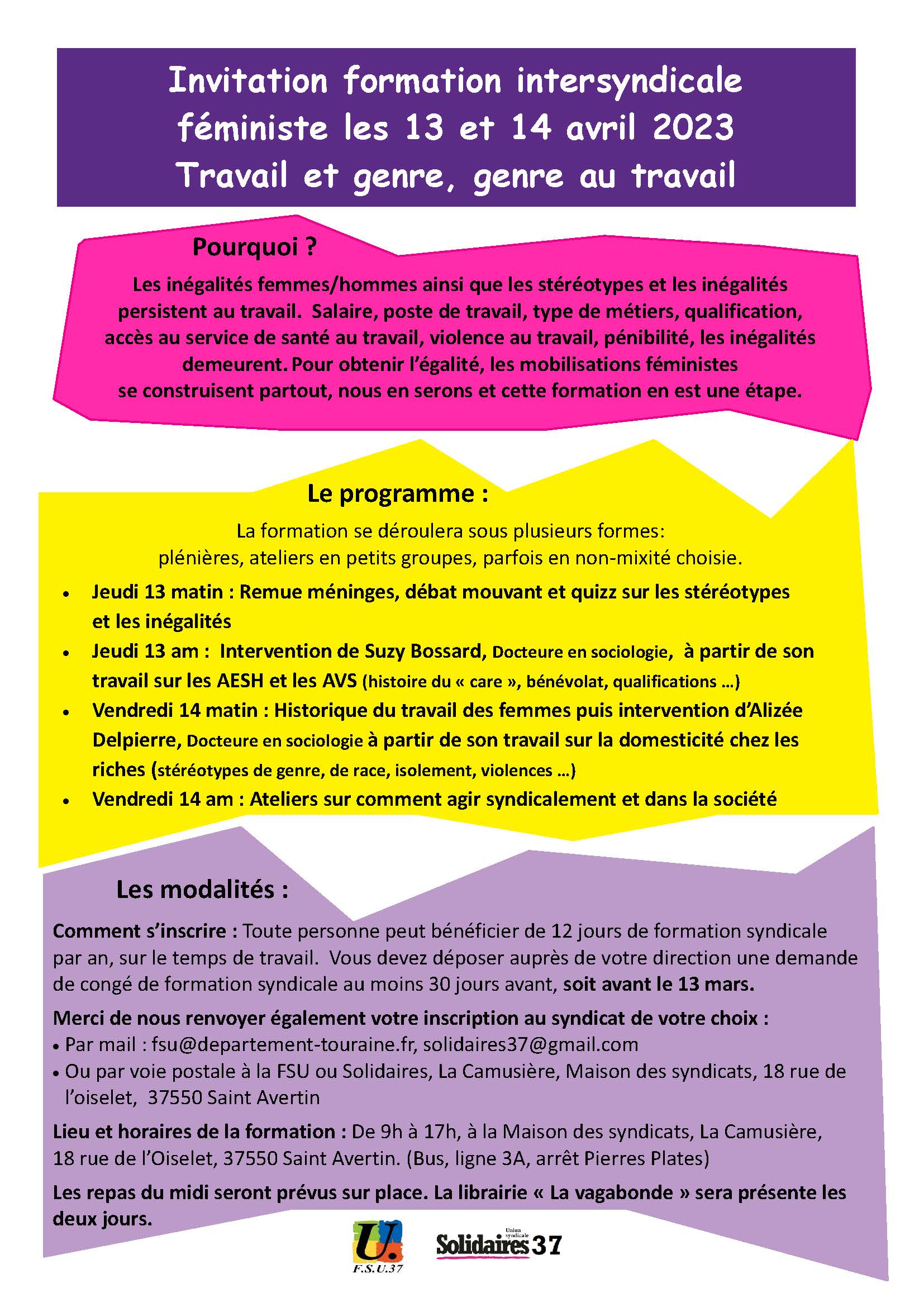 Formation intersyndicale féministe les 13 et 14 avril "Travail et genre, genre au travail"