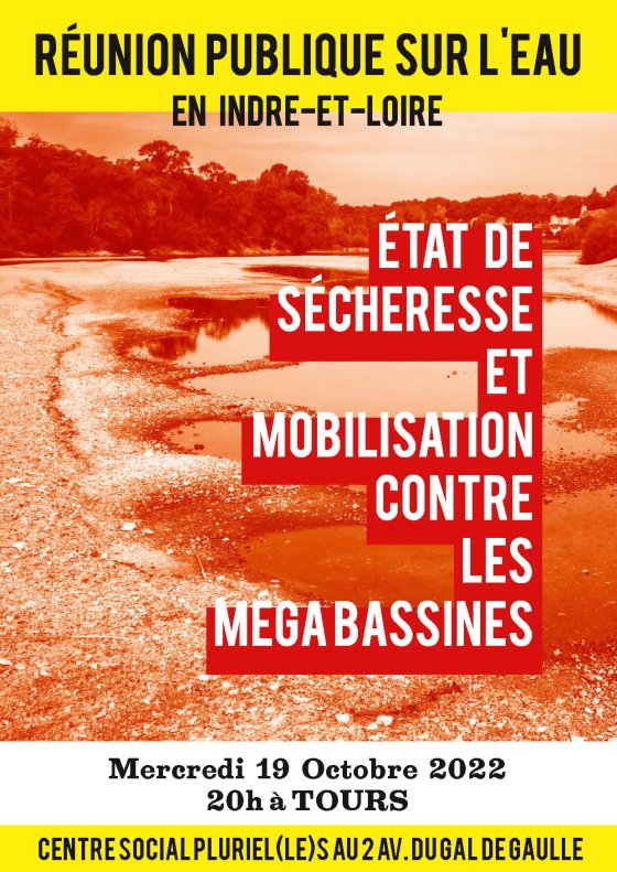Réunion publique le mercredi 19 octobre à 20h au Centre Social Pluriel, 2 Ave du général de Gaulle Tribune de différentes organisations locales d’Indre et Loire ci-dessous