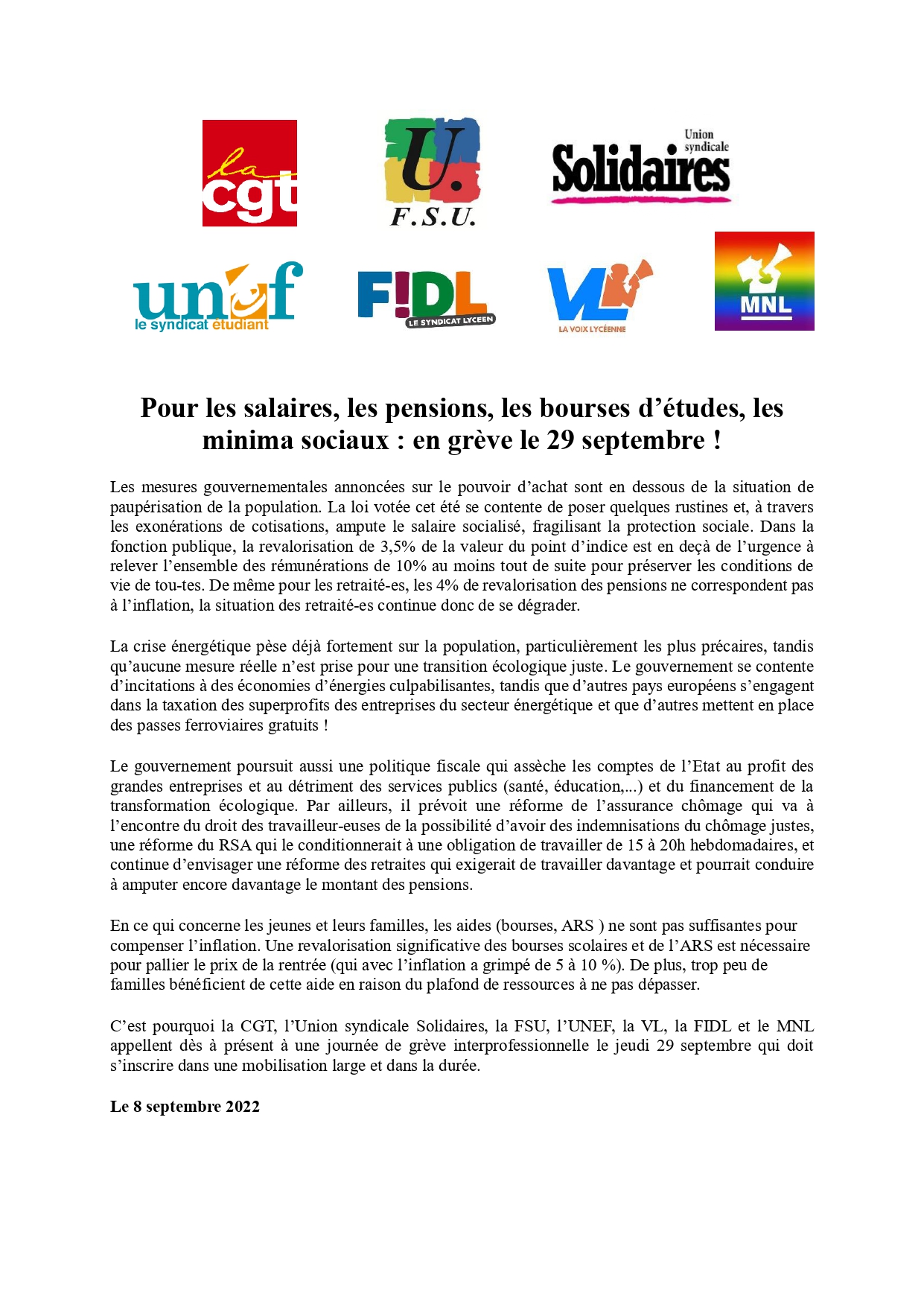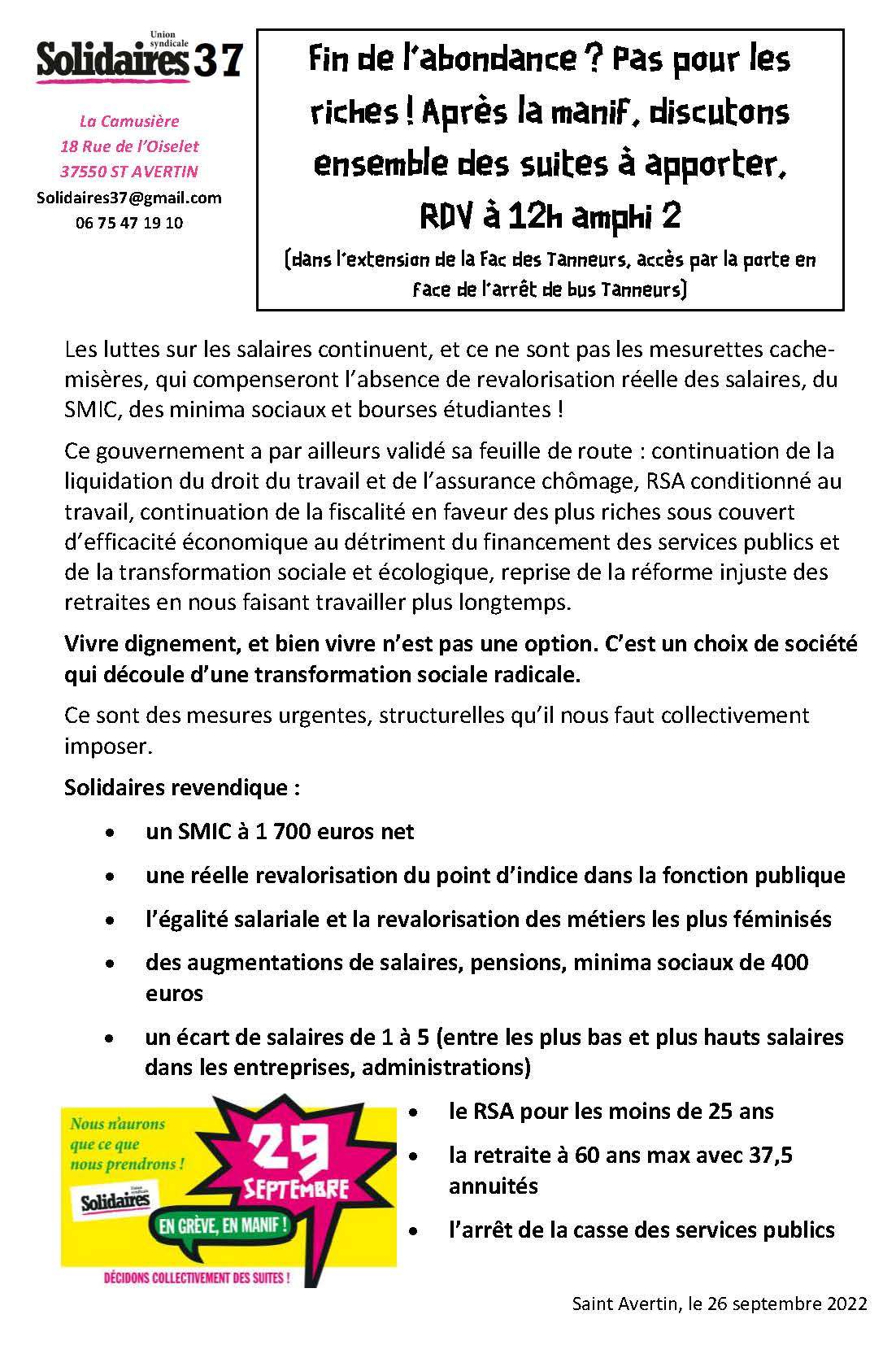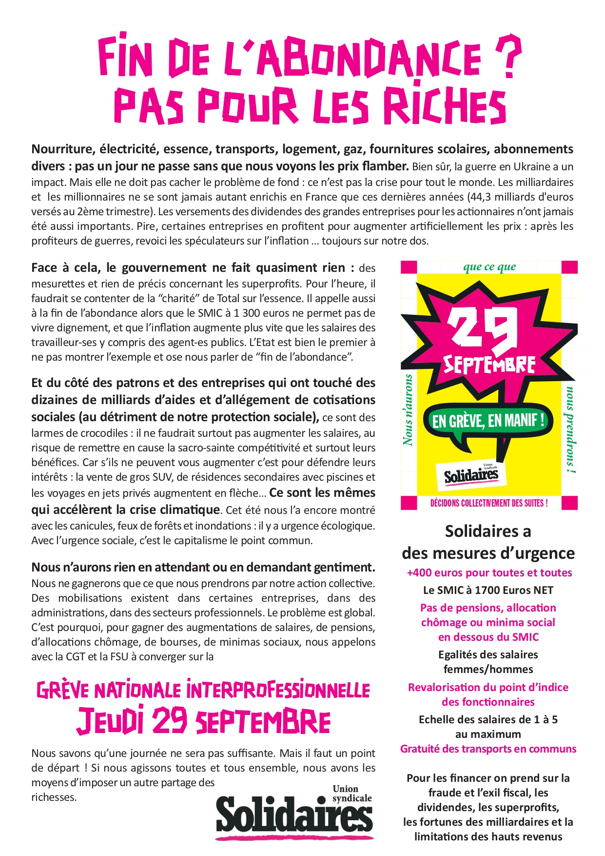 La fin de l’abondance ? Pas pour les riches ! Toutes et tous en grève le 29 septembre !