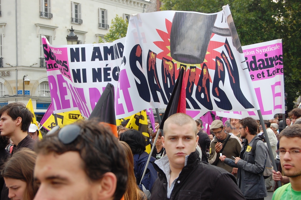 Sur les banderoles, les slogans fleurissent en ce premier jour d’automne : « Sarko, on n’est pas des robots ! », ou encore : « La crise, les uns la paient, les autres l’empochent ». Le refrain « Les vieux dans la misère, les jeunes dans la galère » reste bien placé au hit-parade. Cheminots, métallos, municipaux de Tours et Saint-Pierre, EDF-GDF, SKF, Pfizer, Michelin, Fil bleu, NR, Finance publique, CHU et ses blouses blanches, les caisses et l’Éducation, quelques lycées (Monnet, d’Arsonval, Descartes), université et enseignement libre catholique, Inra et Faiveley, le conseil général, une dizaine de pompiers en tenue, tous sont du rendez-vous. Sud et Solidaires en force, FO en forme, CGT toujours omniprésente, CFDT plus discrète, dit-on. Beaucoup d’anciens, peu de jeunes. Quelques fumigènes et vuvuzela. Voilà pour l’ambiance d’hier à Tours.