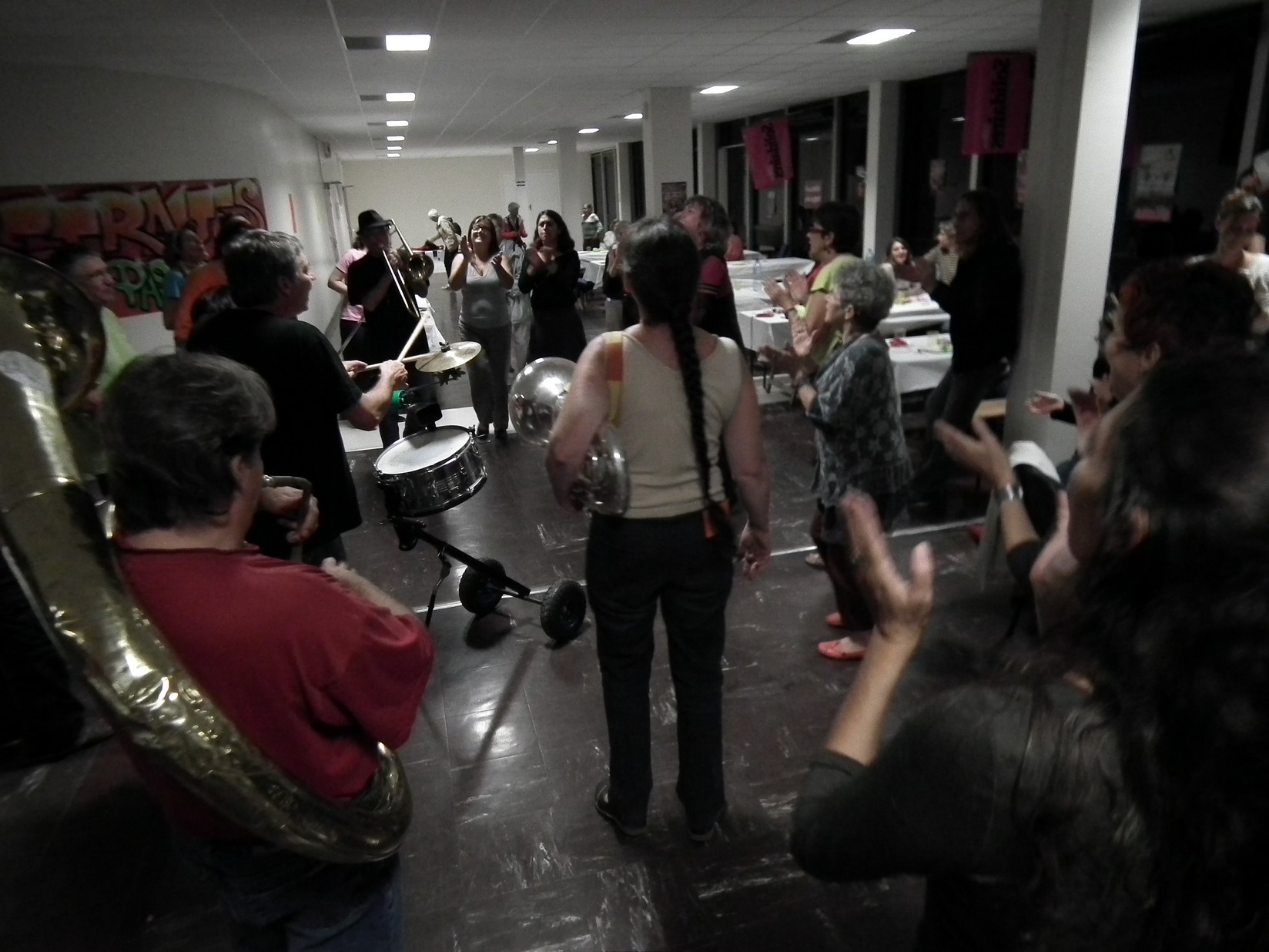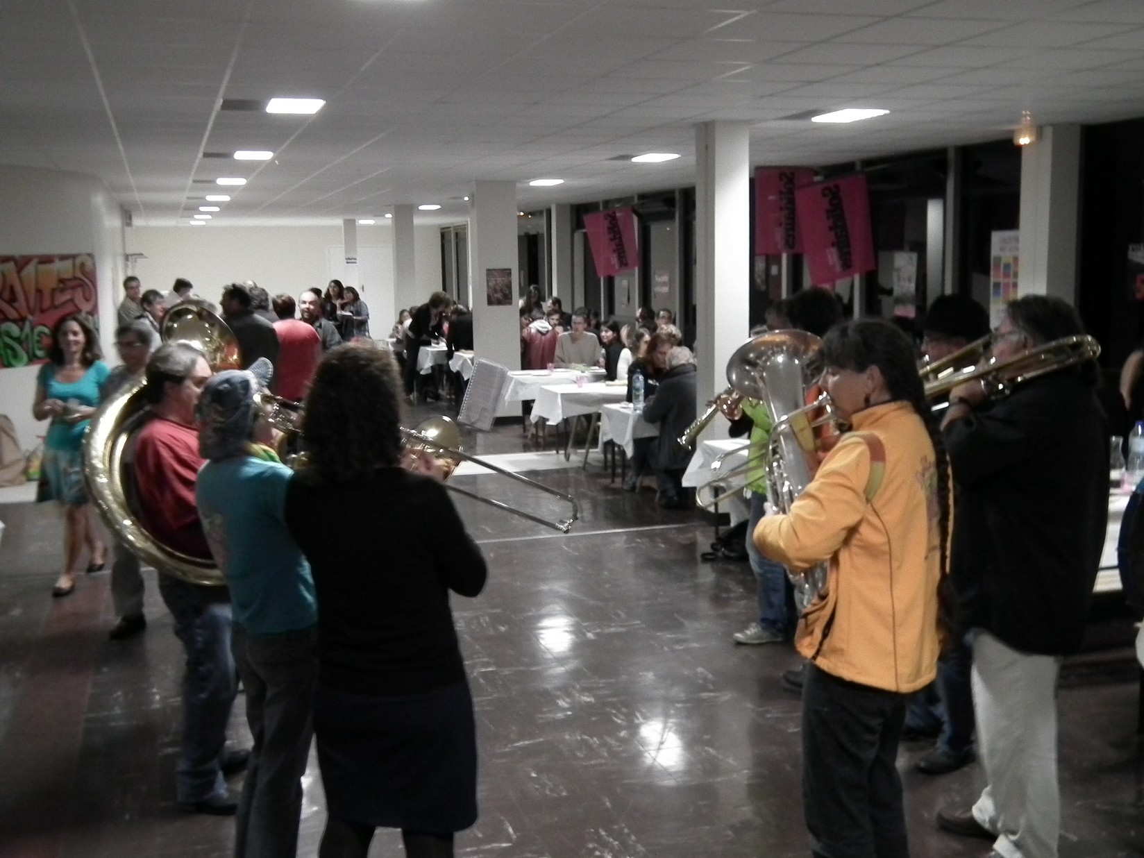 A noter l’intervention toute en finesse de la coopérative "l’Engrenage" (Education Populaire), le débat très argumenté par Bernard Friot et les bons moments avec la fanfare "Bellaciao" et le groupe "The Bastards of Saint Pierre de Corps".