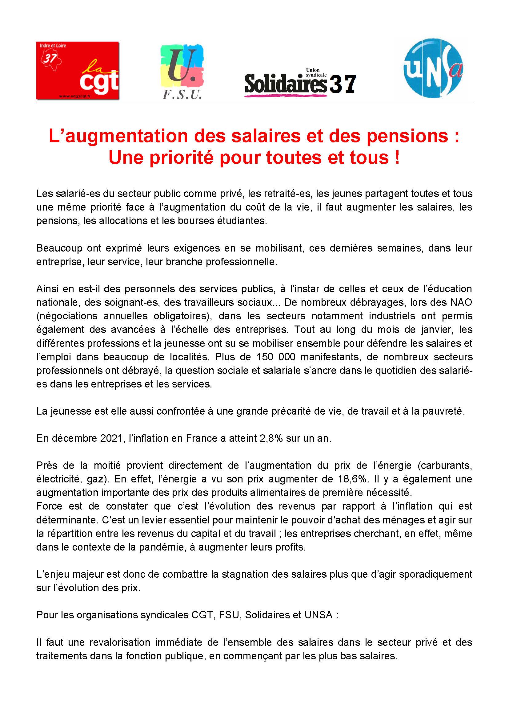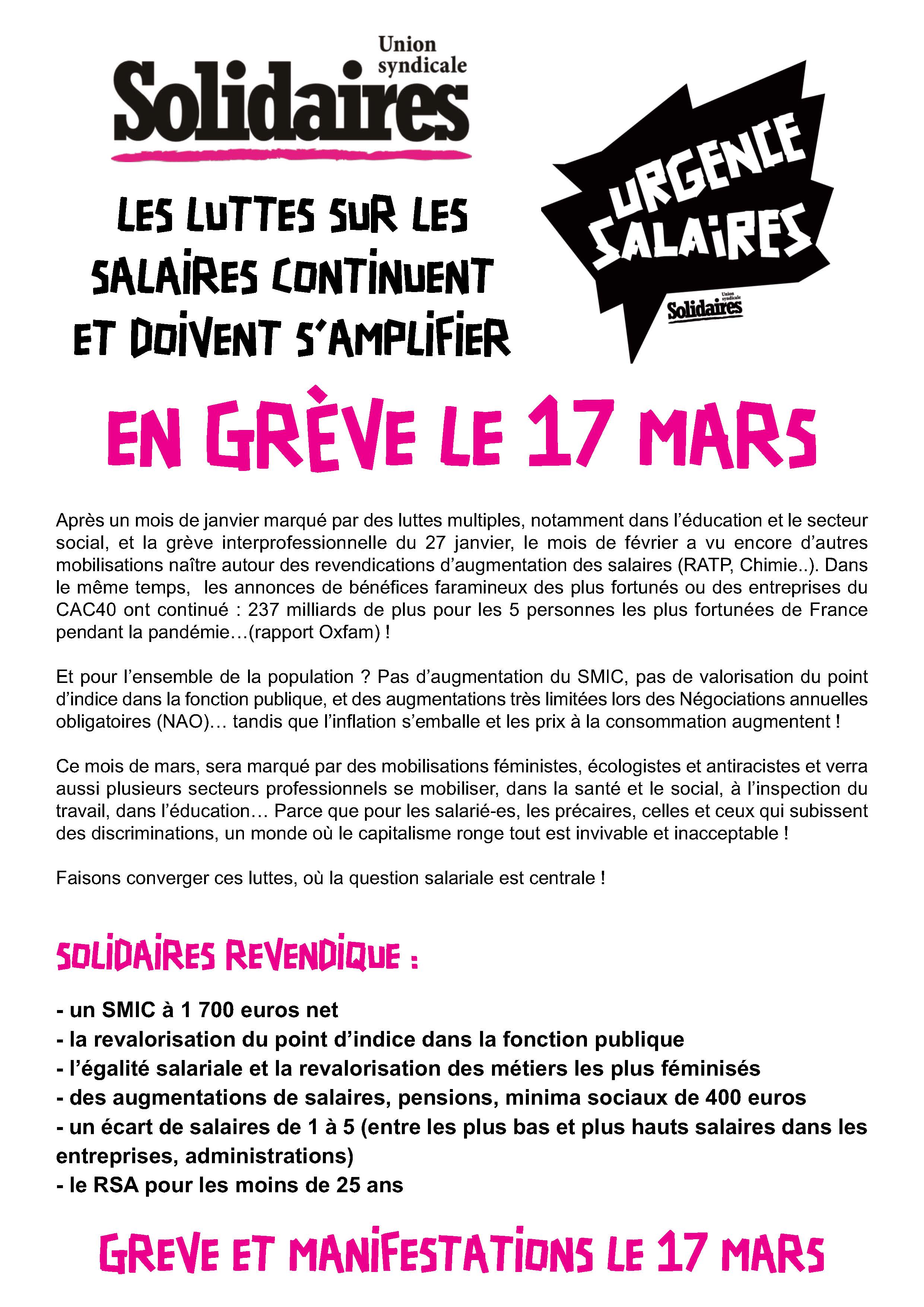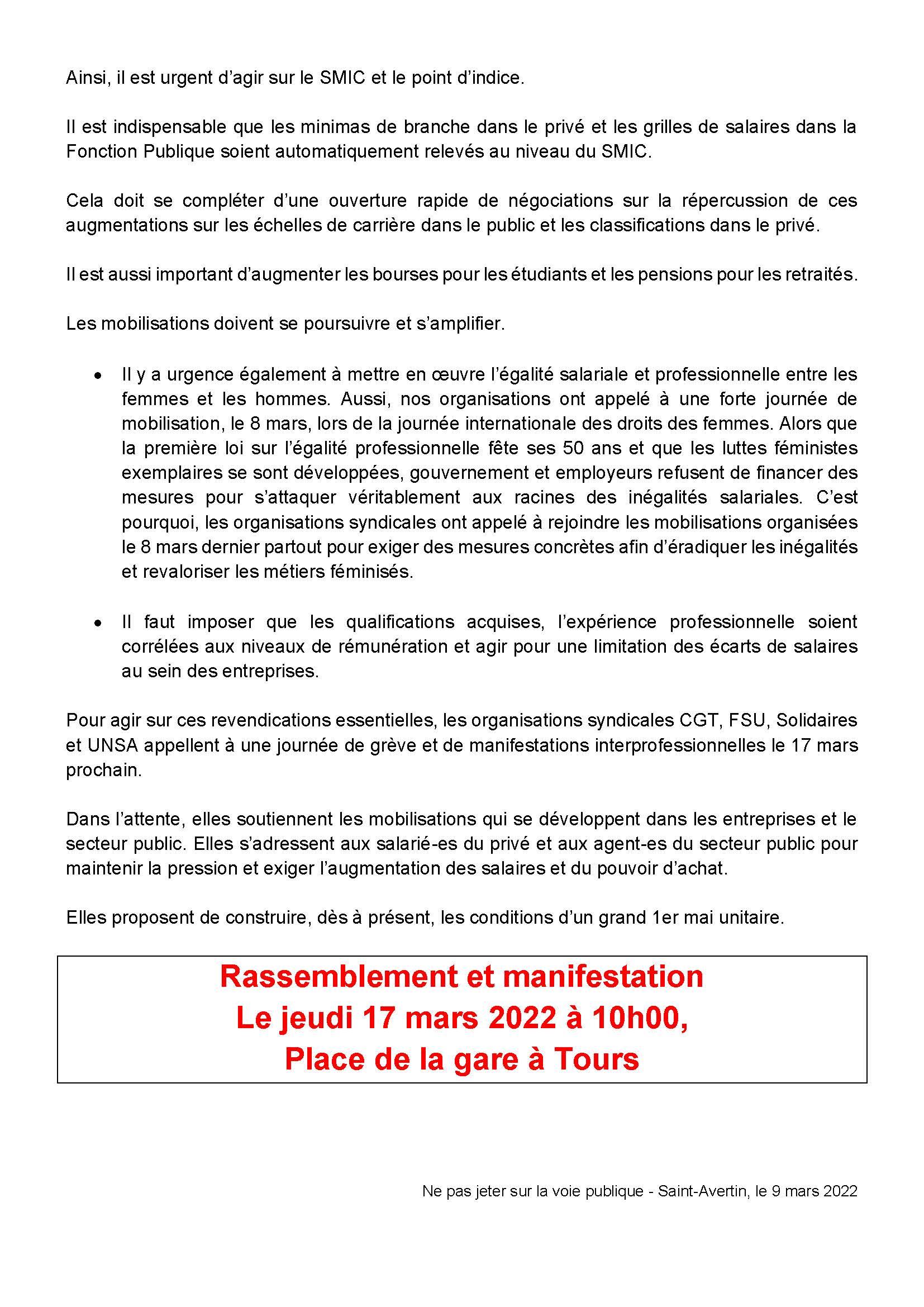 Les luttes pour l’augmentation des salaires se poursuivent. Rdv jeudi 17 mars à 10h place de la gare à Tours.