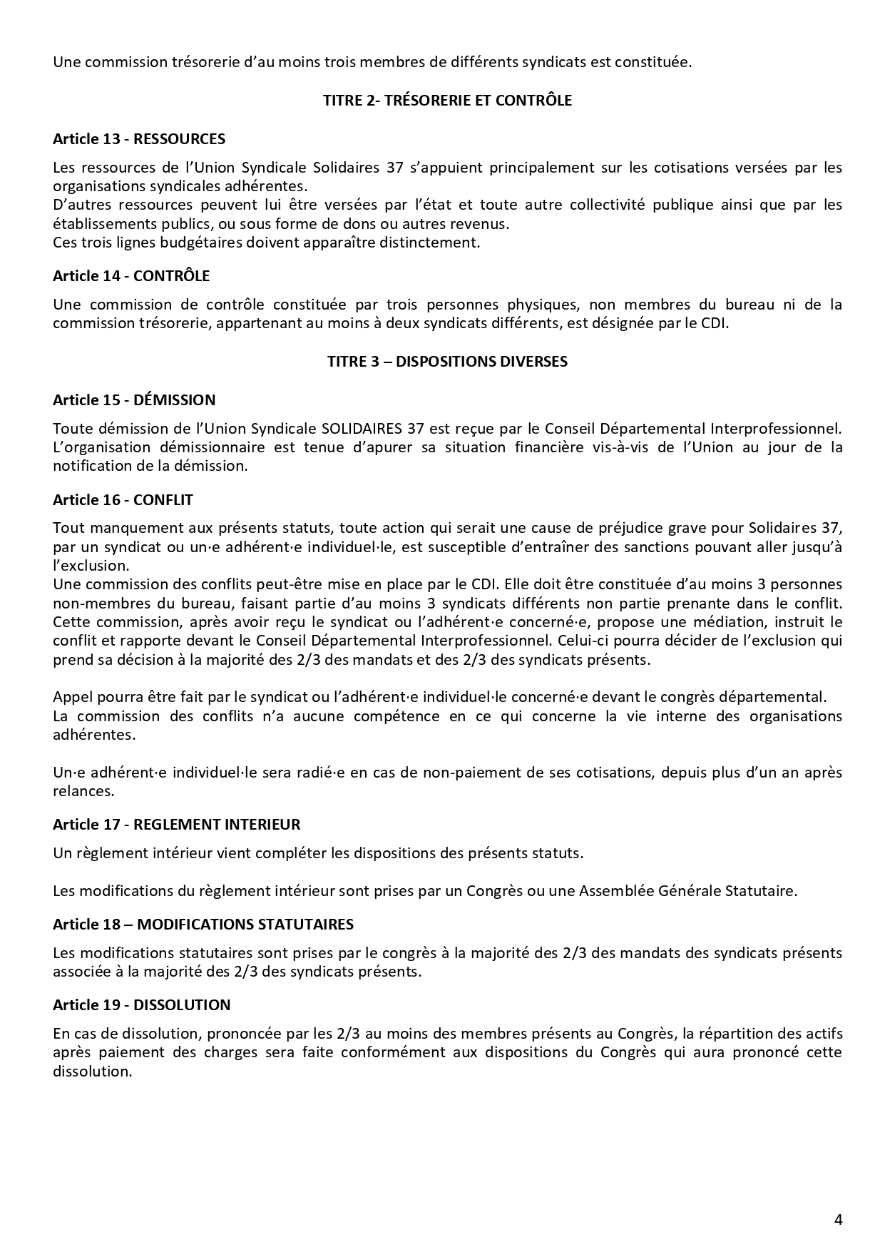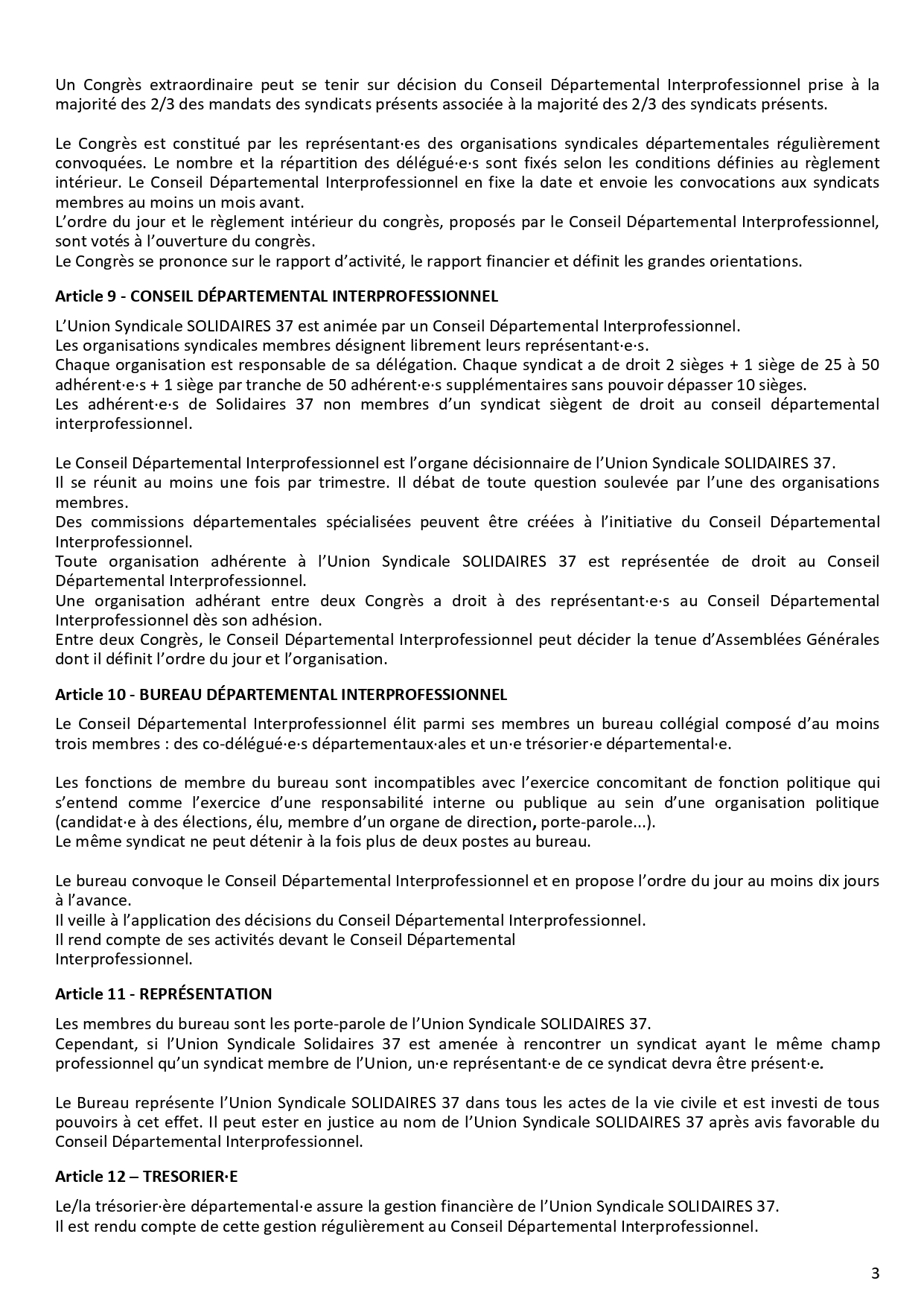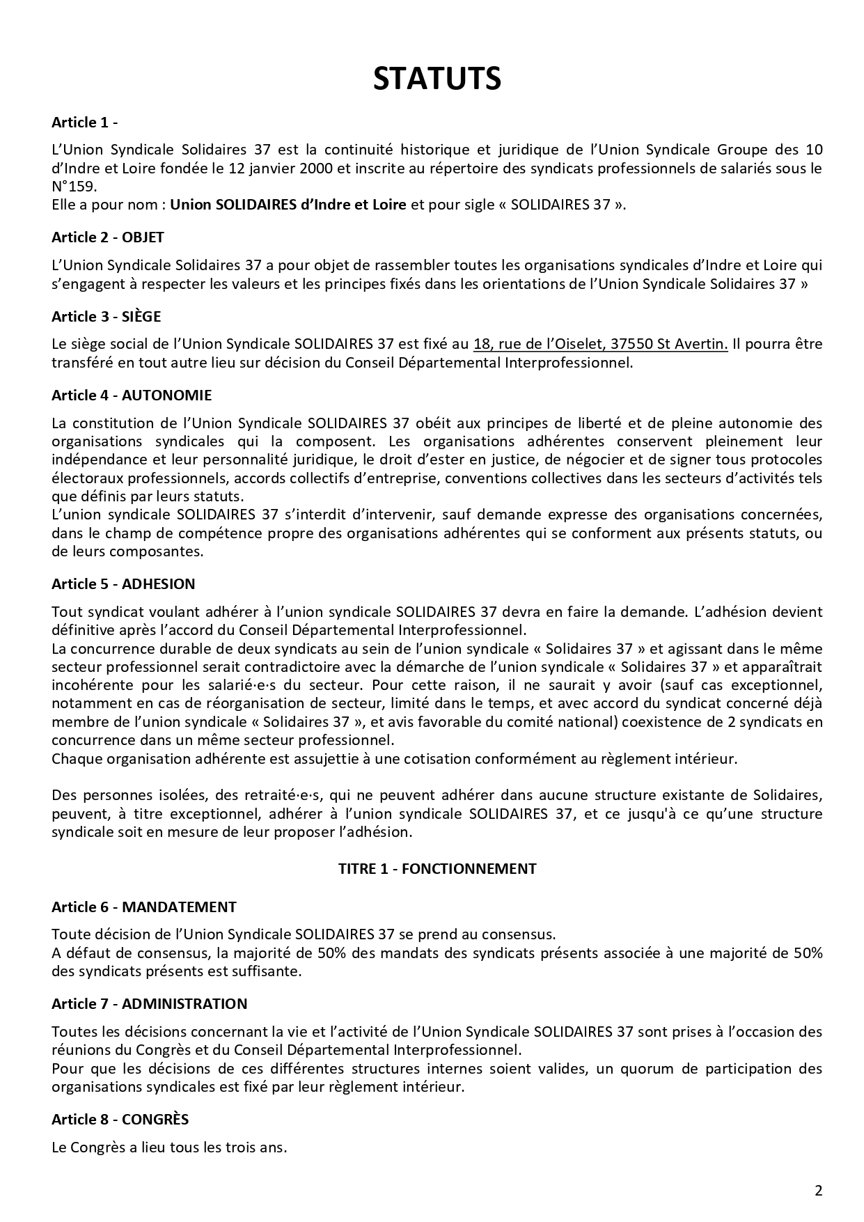 Statuts de Solidaires 37 modifiés congrès novembre 2021
