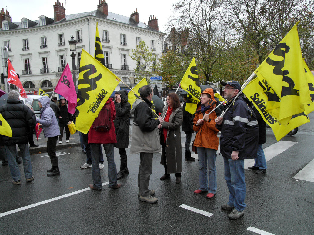 Malgré la floppée d’organisations "de gôche" et d’associations qui appellaient à se rassemblement, peu de monde dans les rues. A peine 200 personnes (et encore)... C’est vrai, il pleuvait.... Mais bon.... La CGT s’est mise à courir à 2 reprises pour se mettre devant SUD.... Les cons... C’est vrai qu’à ce petit jeu là, elle réussit bien... Idem lorsqu’il s’agit de faire capoter l’idée d’une manifestation nationale sur ce sujet là, à Paris, en décembre... Et elle n’est pas la seule...