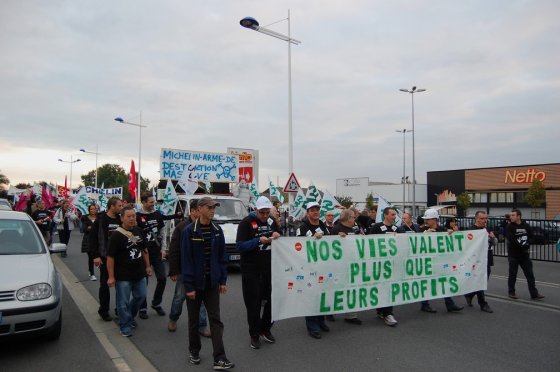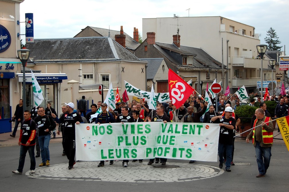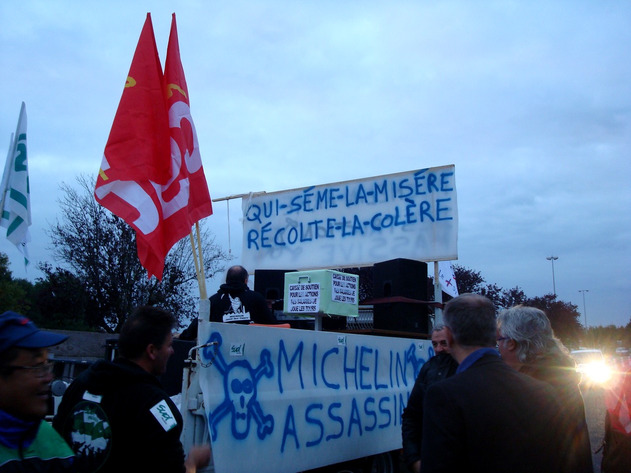 Ce mardi 8 octobre 2013, à 8 heures : usine en grève et grosse manif à Joué les Tours (environ 1500 personnes) sous fond de trahison des élus et mépris de la direction du groupe Michelin.