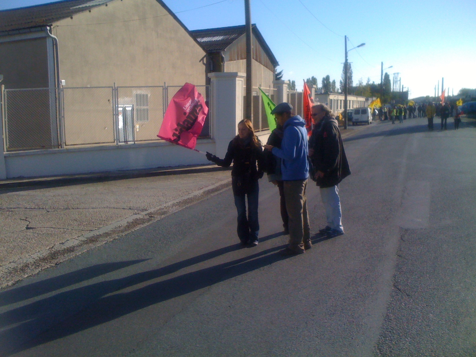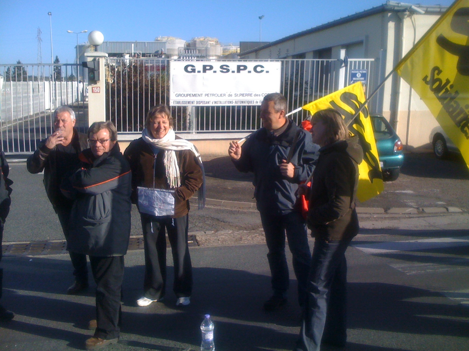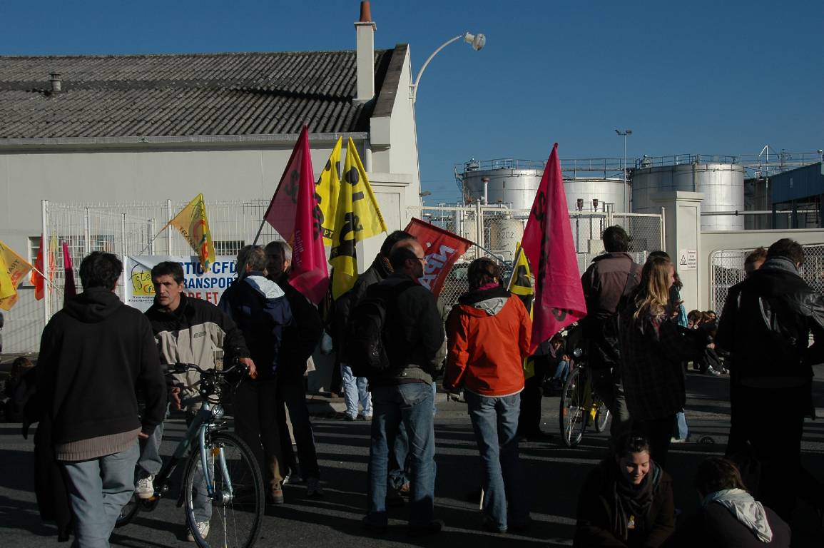 Vers 10 h, l’assemblée s’est divisée en trois équipes. Les uns restant devant la gare, les autres prenant la route, parfois à pied, des dépôts de pétrole de Saint-Pierre et de la déchetterie de la Riche.