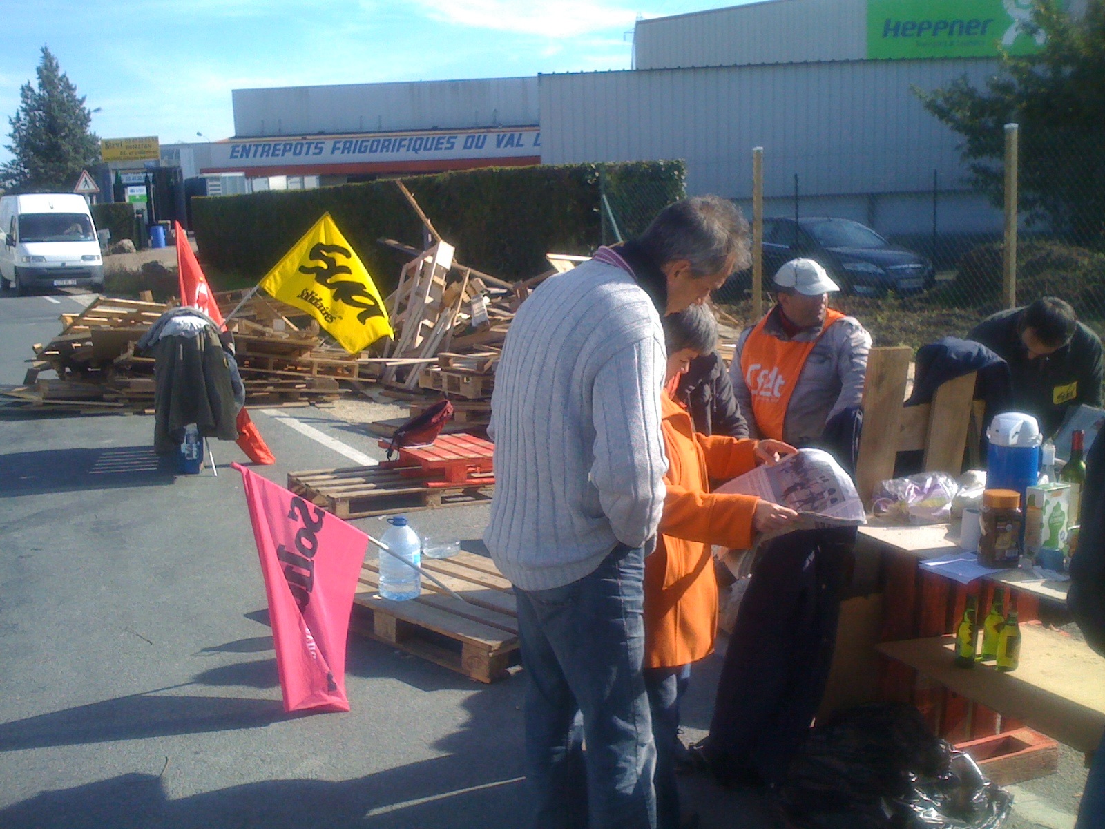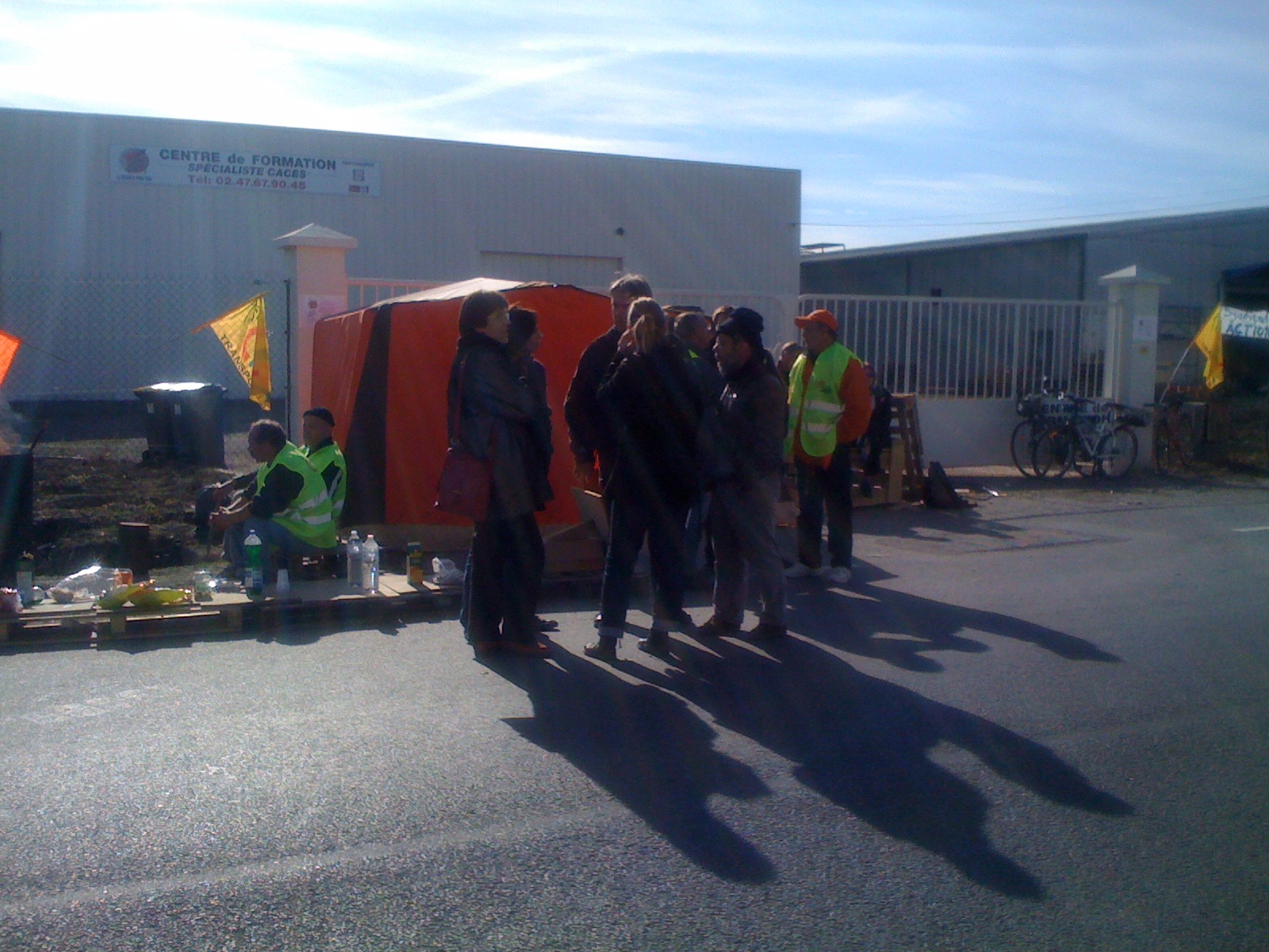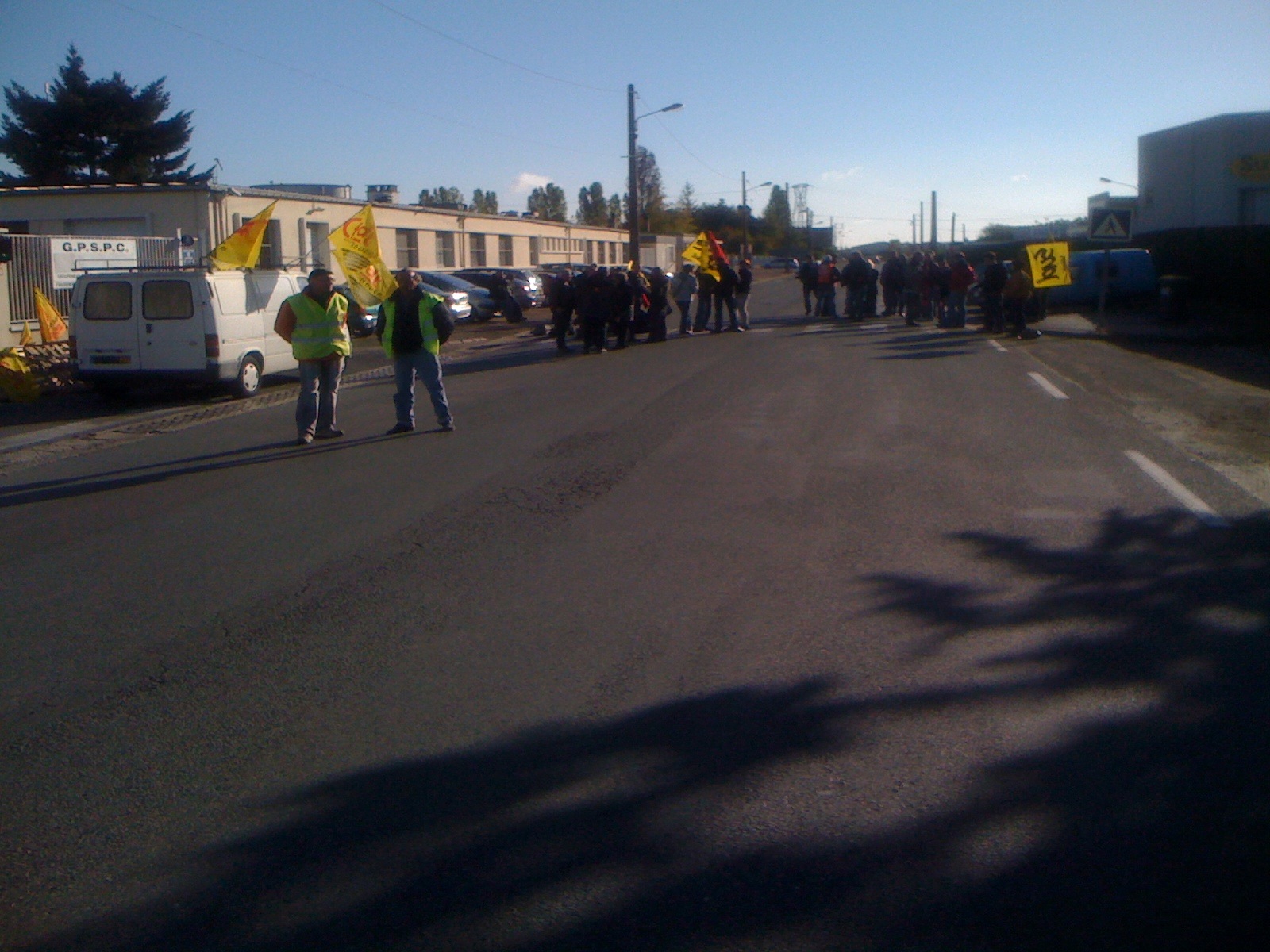 Vers 10 h, l’assemblée s’est divisée en trois équipes. Les uns restant devant la gare, les autres prenant la route, parfois à pied, des dépôts de pétrole de Saint-Pierre et de la déchetterie de la Riche.