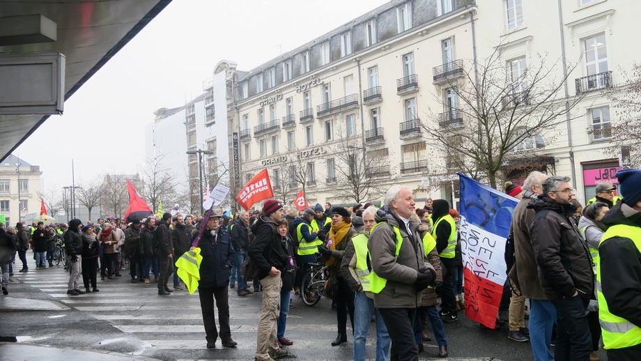 Ce 5 février 2019, à Tours, les Gilets Jaunes se sont invités à la manifestation de la CGT, qui appelait à une journée de grève de 24h "pour des hausses de salaires et davantage de justice fiscale".