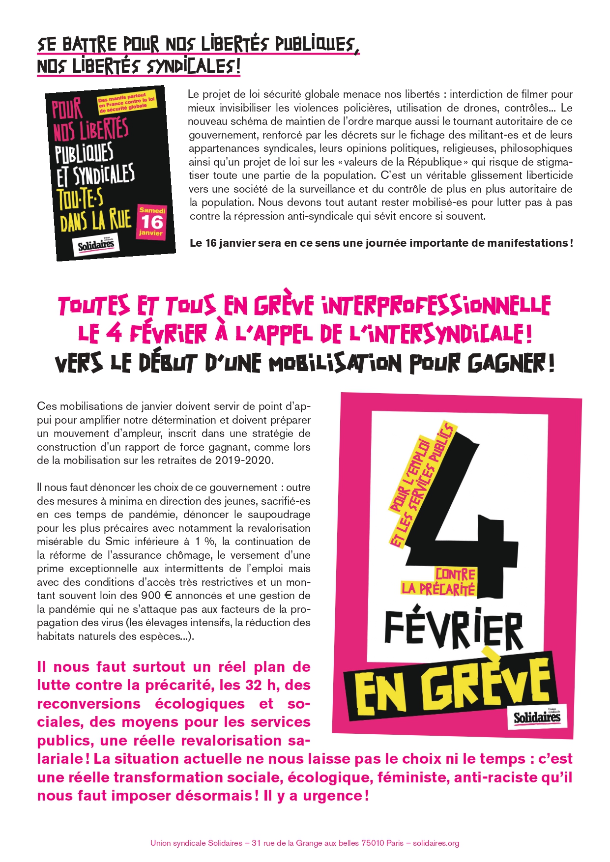 Tract unitaire et solidaires ci-joint et ci-dessous