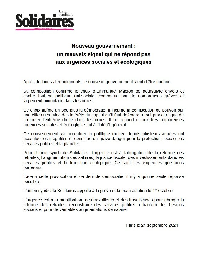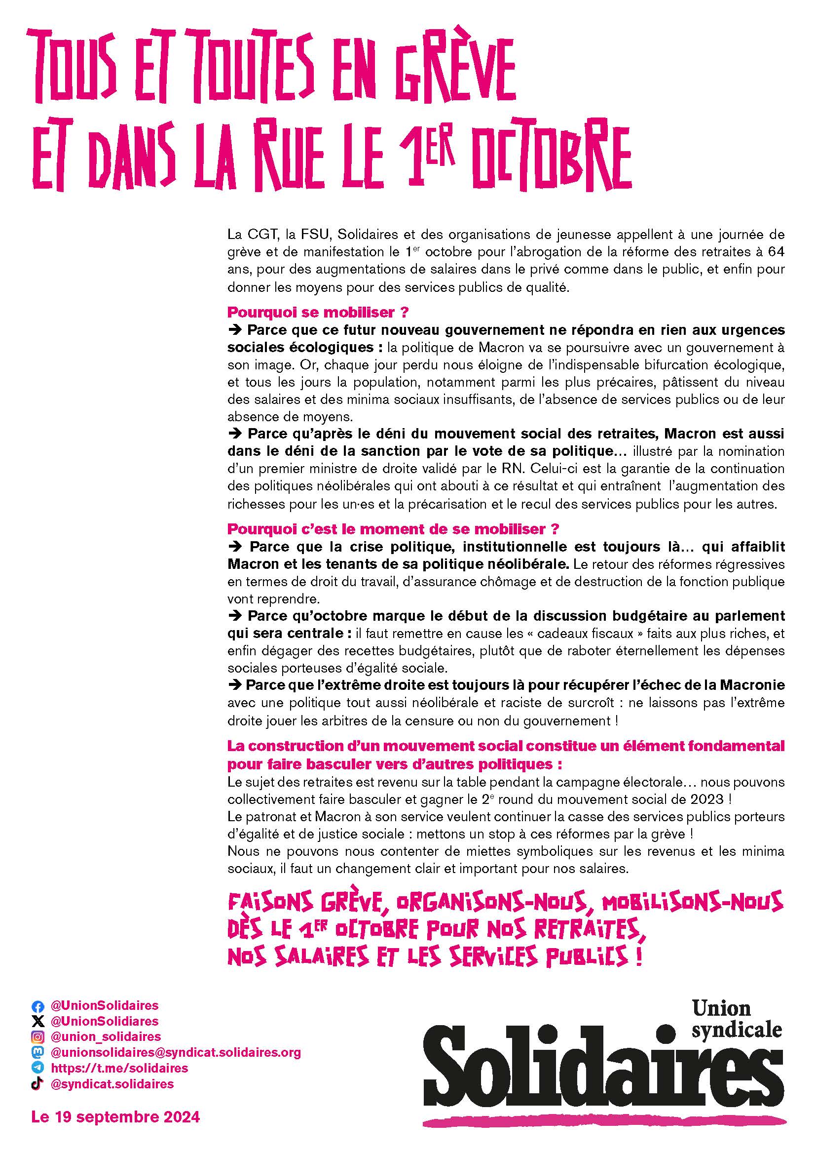 Tracts unitaire et Solidaires ci-dessous