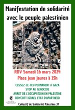 Localement, le collectif mis en place contre la loi immigration, y appelle également avec manifestation au départ de la place de la Liberté à Tours à 14h samedi 23 mars. La Jonction avec la manifestation hebdomadaire en soutien à la Palestine se fera place Jean Jaurès à 15h.